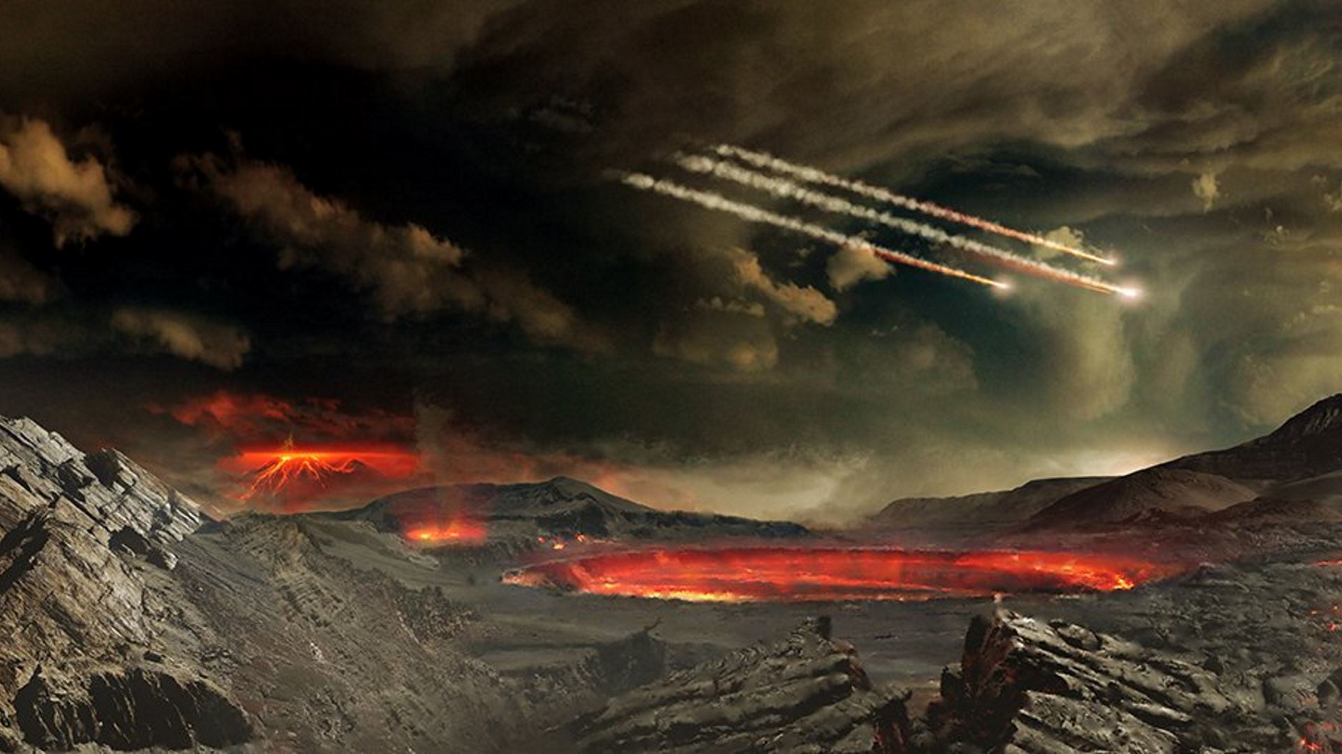 Concepto artístico del Eón Arcaico de la Tierra, hace entre 4 000 y 2 500 millones de años.