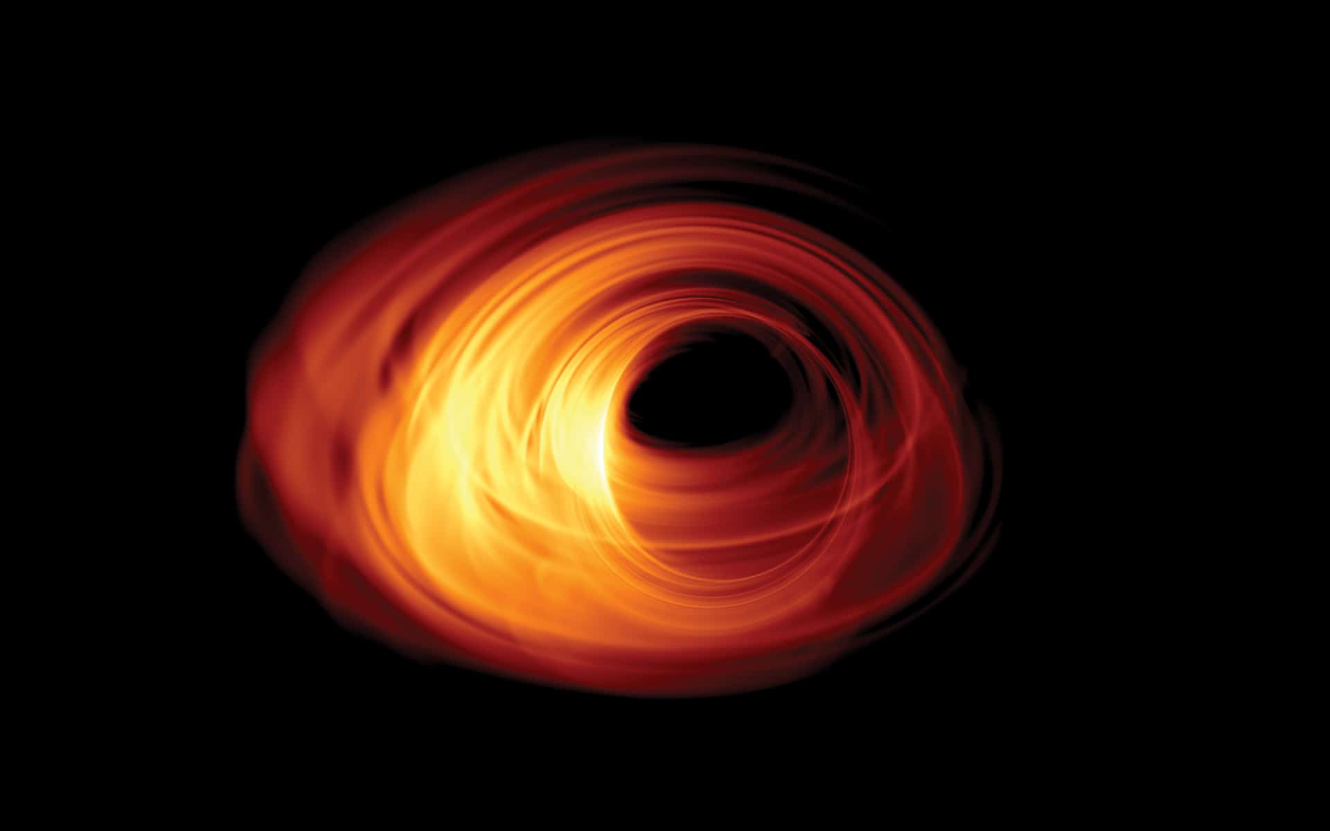 Pero, ¿qué podemos esperar ver? El equipo que trabaja con el EHT ya publicó una imagen simulada de lo que podríamos esperar ver. En realidad, lo que se está buscando es capturar imágenes del horizonte de sucesos de un agujero negro. No hay muchas más opciones porque, como seguramente sepas, no dejan escapar la luz. El horizonte de sucesos determina, precisamente, la región a partir de la que es imposible escapar de la atracción gravitacional del agujero negro. Además, no hay que esperar ver una imagen espectacular.