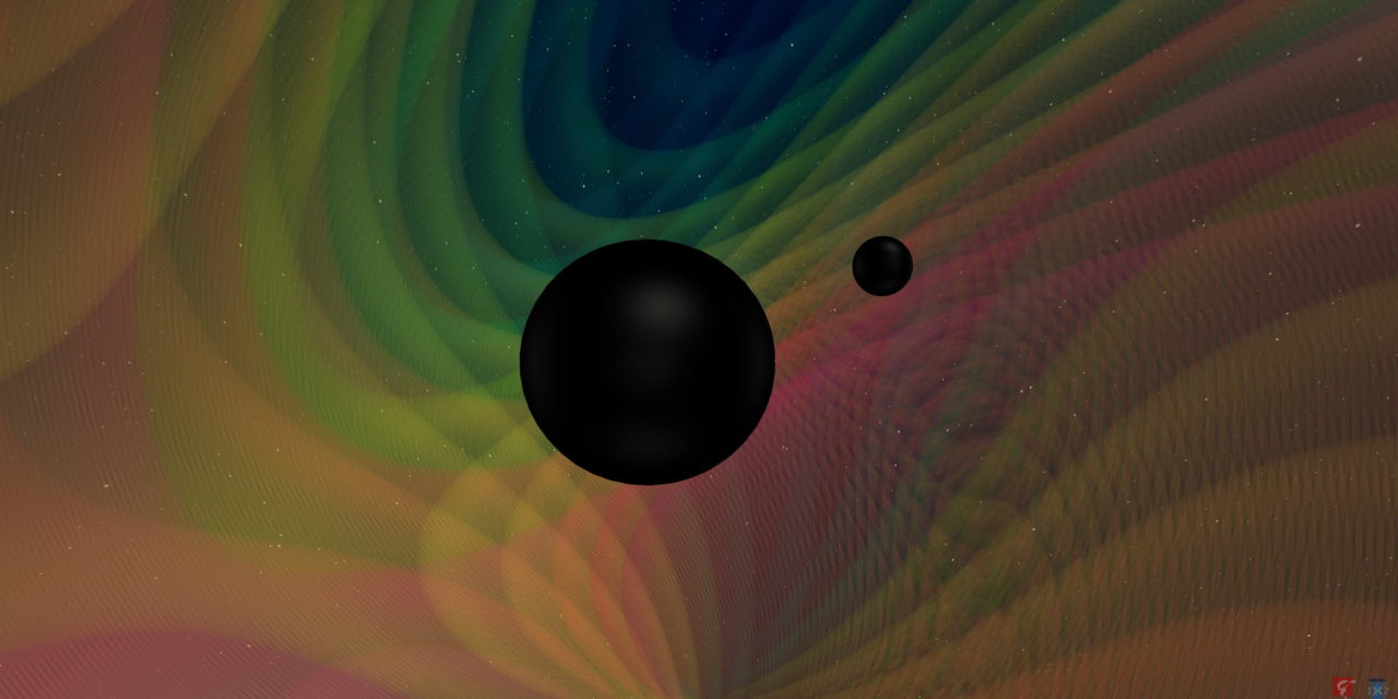 Recreación artística mostrando las ondas gravitacionales generadas por la fusión de dos agujeros negros. Crédito: Swinburne Astronomy Productions