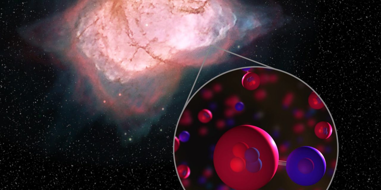 El inconveniente es que ese hidrógeno molecular no se puede formar directamente a partir de la unión de átomos de hidrógeno. Tenía que darse una combinación anterior, el hidruro de helio. Las teorías apuntaban a que debió formarse, por primera vez, unos 100 000 años después del Big Bang. En aquel momento, el cosmos era todavía muy caliente y estaba formado únicamente por hidrógeno, helio y litio. Con el paso del tiempo, a medida que el universo se enfriaba, las condiciones fueron apropiadas para el nacimiento de las primeras estrellas.